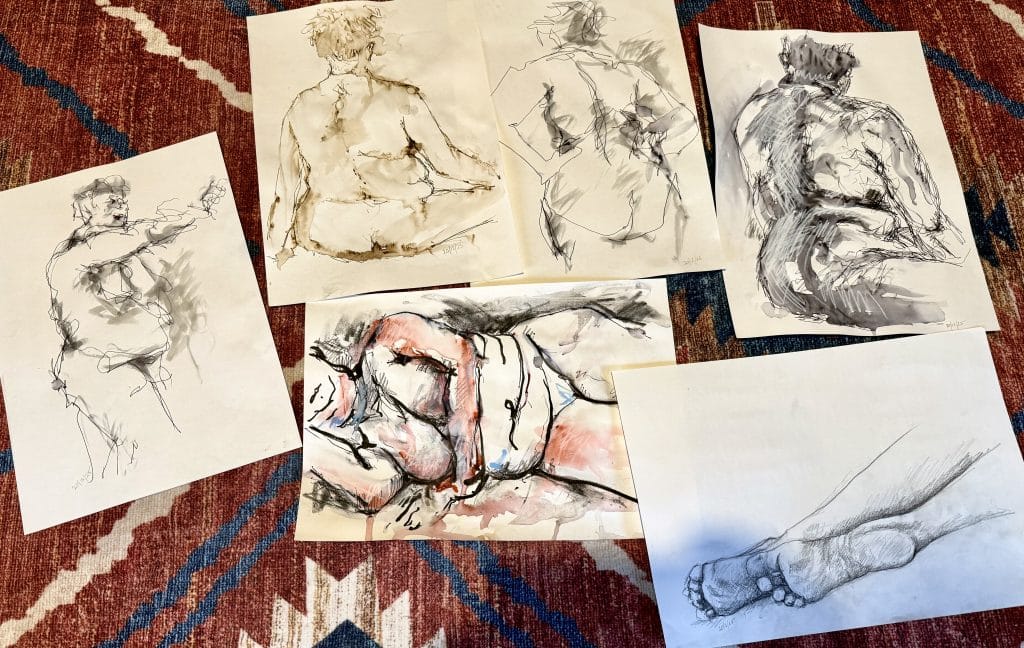 I don’t often use an iPad in these life classes, but I felt a need for precision today and didn’t have a sharp pencil. Also wanted to look at hands. This is using ‘Procreate‘ which I enjoy using for drawing.